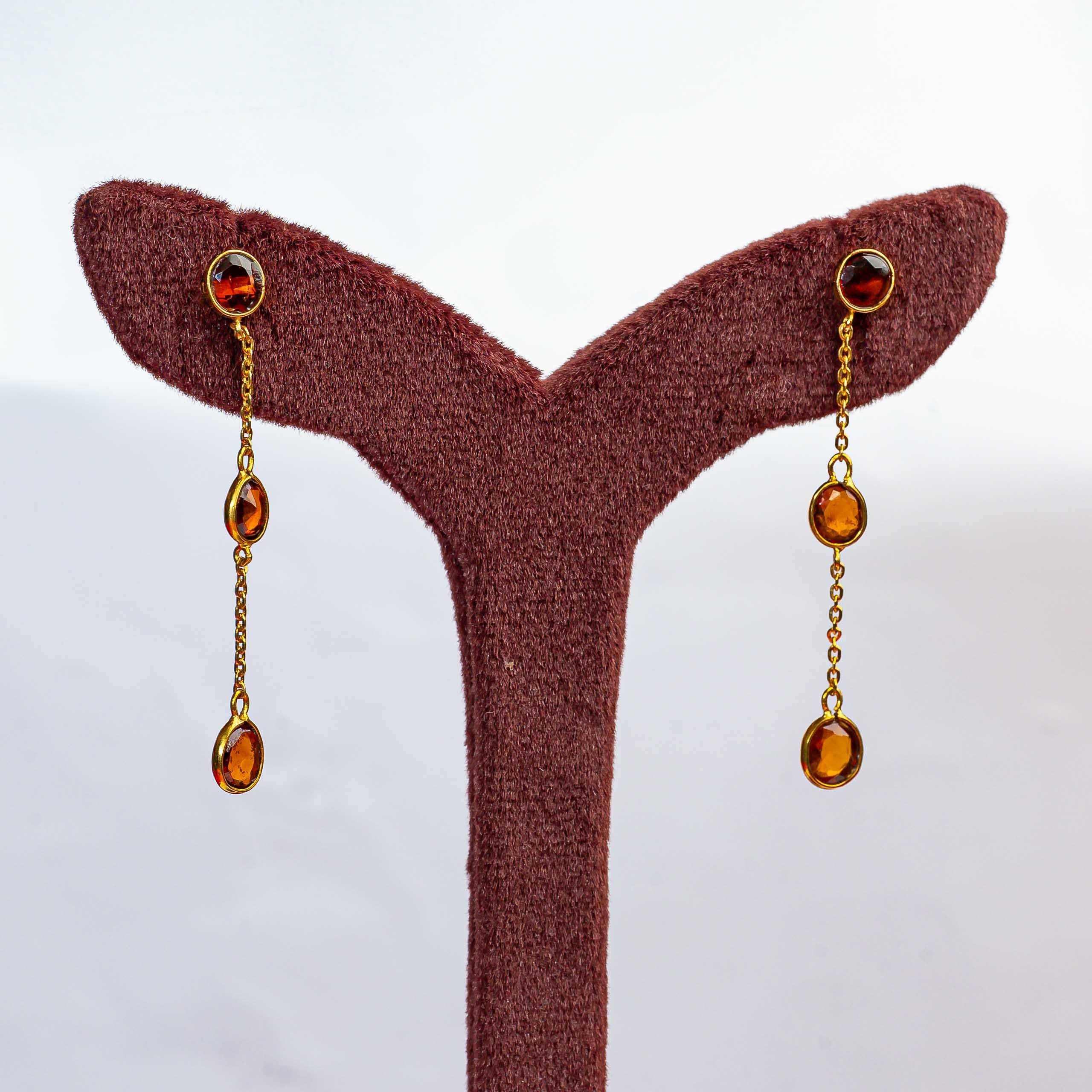 Gold Danglers With Garnet Stones